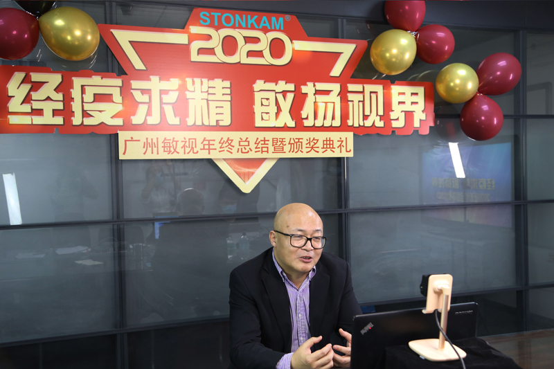 最后,敏視總經(jīng)理石錫敏先生以“命運(yùn)與共,大道不孤”為主題進(jìn)行致辭。石總首先回顧總結(jié)了2020年復(fù)雜多變的經(jīng)濟(jì)趨勢(shì)及行業(yè)市場(chǎng)發(fā)展?fàn)顩r,充分肯定了2020年公司所取得的成績(jī):銷售業(yè)績(jī)?cè)賱?chuàng)新高、與更多的世界500強(qiáng)企業(yè)達(dá)成戰(zhàn)略合作、全品類產(chǎn)品AI進(jìn)程加快。這一項(xiàng)項(xiàng)不斐的成績(jī),得益于客戶和供應(yīng)商的大力支持、全體敏視人的不懈努力以及默默陪伴的各位敏視人家屬。