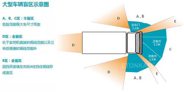 如果行人或車輛停留在這個區(qū)域,大貨車的駕駛員根本看不見任何東西,后果將不堪設(shè)想!