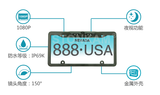 STONKAM?1080P防水紅外車牌架攝像頭,1080P高清錄像,防水等級達(dá)IP69K,有紅外線功能,超低照度,夜間自動開啟夜視功能,晚上倒車也看得見;根據(jù)需要,可選擇開或關(guān)閉電子標(biāo)簽;黑色、銀色金屬外殼可選。