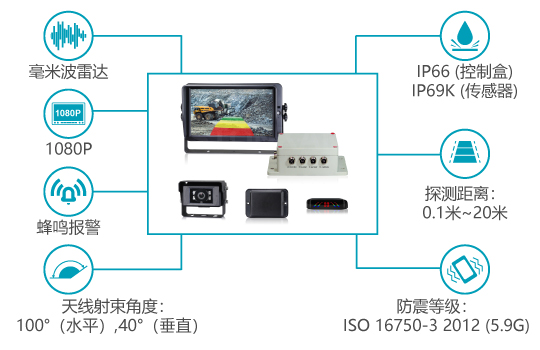 敏視 1080P 24GHz毫米波倒車?yán)走_(dá)系統(tǒng)它是一款用于重型商用車的中短距離探測雷達(dá)系統(tǒng)。可為操作人員提供視覺和聽覺警報,以避免潛在危險并使他們能夠提前采取適當(dāng)行動。