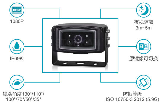 敏視提供大巴車(chē)倒車(chē)后視攝像頭,具有1080P / 720P高清,IP69K防水,夜視等功能。
