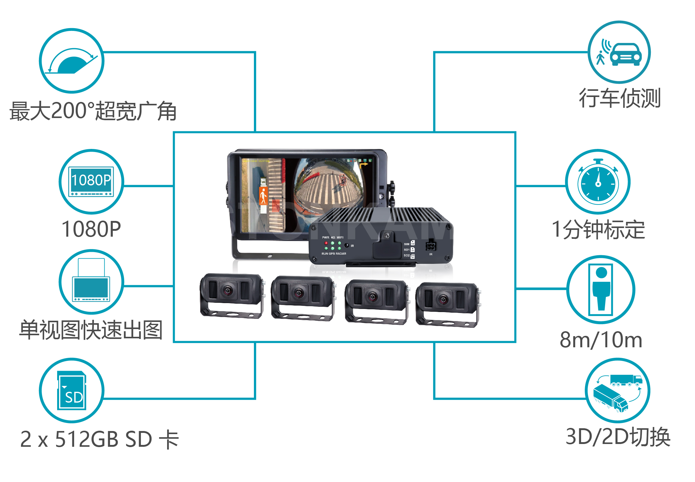 敏視360°全景行人偵測(cè)系統(tǒng)能夠?qū)崿F(xiàn)真正的360°全景鳥瞰,做到360°無(wú)死角監(jiān)控,行車更安全。它支持全景影像合成技術(shù),塑造3D行車場(chǎng)景。專為卡車,公交車,應(yīng)急車輛等設(shè)計(jì),易于安裝和標(biāo)定。若與雷達(dá)探測(cè)系統(tǒng)結(jié)合使用將會(huì)大大有效提高行車安全性。