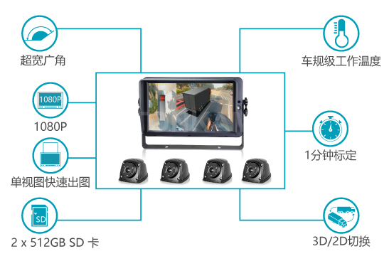 360° 3D全景行車系統(tǒng)能夠實現(xiàn)真正的360°全景鳥瞰,做到360°無死角監(jiān)控,行車更安全。它支持全景影像合成技術,塑造3D行車場景。專為卡車,公交車,應急車輛等設計,易于安裝和標定。若與雷達探測系統(tǒng)結合使用將會大大有效提高行車安全性。