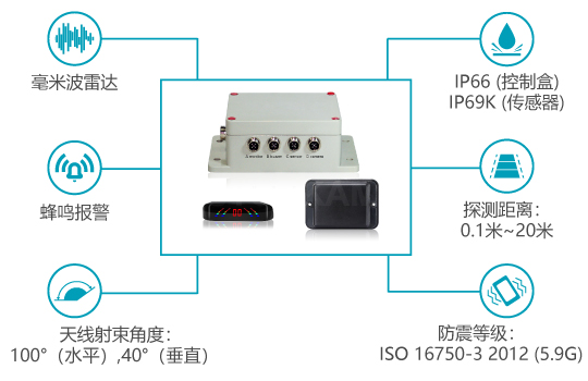 敏視 1080P 24GHz毫米波倒車雷達系統(tǒng)它是一款用于重型商用車的中短距離探測雷達系統(tǒng)。可為操作人員提供視覺和聽覺警報,以避免潛在危險并使他們能夠提前采取適當行動。