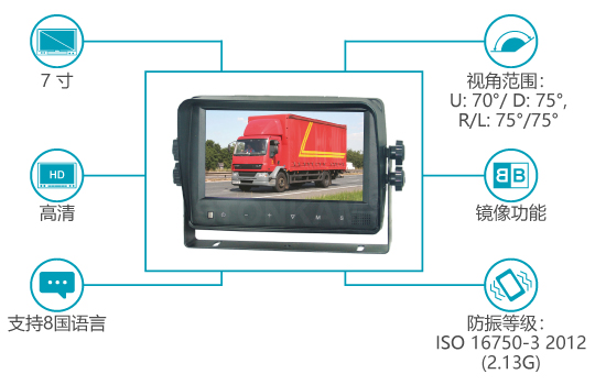 7寸防水高清數(shù)字液晶顯示器,支持IP66防水級別,采用大視角高分辨率TFT數(shù)字液晶顯示屏。圖像可上下翻轉、原鏡像可調。支持8國語言。支持多種制式自動識別:1080P30/1080P25/720P30/720P25/PAL/NTSC。支持自動亮度調節(jié)。具備全部功能的遙控器。支持觸摸按鍵,帶背光。顯示器帶揚聲器, 用戶可從控制面板調節(jié)聲音等等。