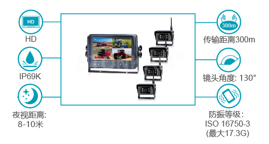 敏視7寸數(shù)字高清車載無線防水四分割顯示器易于安裝,特別適用于播種機,吊車,起重機等。