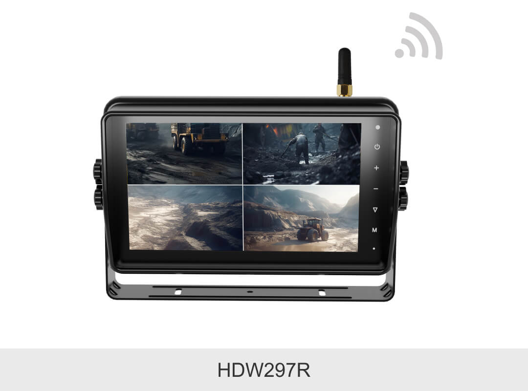 敏視10.1寸高清無線四分割車載錄像監(jiān)控顯示器具有IP66防水外殼,配備錄像和觸屏功能;空曠傳輸距離最遠(yuǎn)達(dá)180m,信號(hào)穩(wěn)定抗干擾,支持多畫面顯示模式,適用于卡車,叉車,礦車等各種車輛。