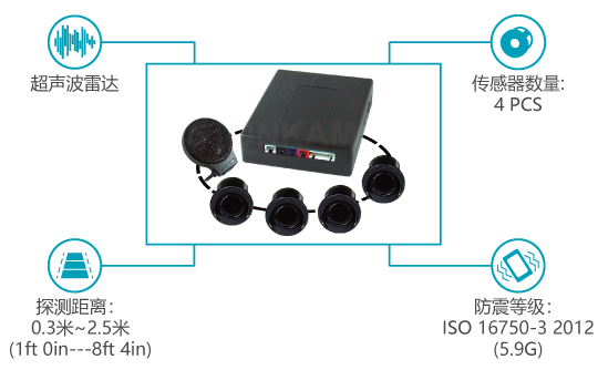 敏視提供最佳的帶攝像頭和顯示器的可視倒車雷達系統(tǒng)。該系統(tǒng)含有4個倒車雷達探頭傳感器,可與各種顯示器和標清后視攝像頭搭配。