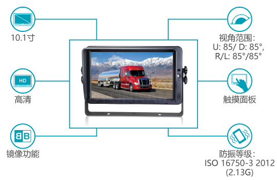 STONKAM 10.1寸高清汽車觸控顯示器,采用電容式觸摸屏操作,亦可使用紅外遙控;支持4路1080P高清攝像頭模擬輸入,9種菜單語言可選,多種視頻格式可供選擇。