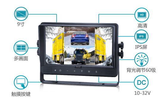 9寸高清貨車大巴客車車載顯示器監(jiān)控系統(tǒng)