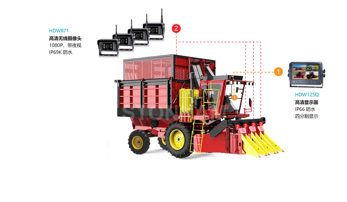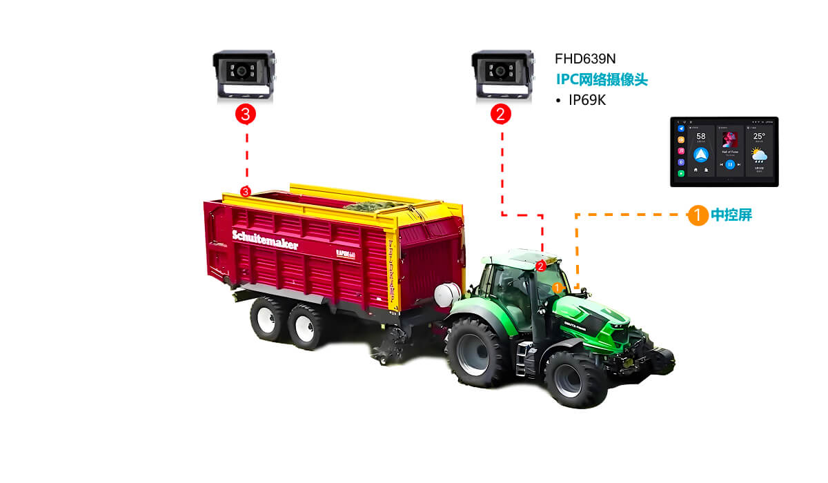 農(nóng)場(chǎng)作業(yè)中,播種機(jī)、拖拉機(jī)和收割機(jī)等大型農(nóng)業(yè)機(jī)械常面臨駕駛員視野受限的挑戰(zhàn):車周及關(guān)鍵作業(yè)部位存在盲區(qū),夜間或惡劣天氣下更難掌控全局,容易發(fā)生碰撞或誤操作;同時(shí),播種行、掛接狀態(tài)及收割作業(yè)點(diǎn)難以實(shí)時(shí)監(jiān)控,作業(yè)調(diào)整滯后,效率低下且資源浪費(fèi)嚴(yán)重。這些痛點(diǎn)直接影響作業(yè)安全與生產(chǎn)效益,是現(xiàn)代農(nóng)場(chǎng)亟需解決的核心問(wèn)題。