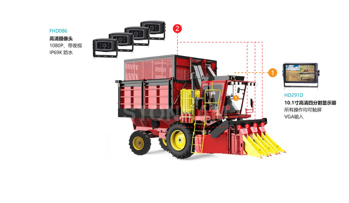 10.1寸高清四分割監(jiān)控系統(tǒng),帶觸摸屏控制功能,可以識(shí)別左右滑動(dòng)手勢(shì),多種分割模式可選,使用方便,駕駛員可通過(guò)高清顯示器實(shí)時(shí)查看作業(yè)全過(guò)程,大大提高收割效率,節(jié)省人力物力。