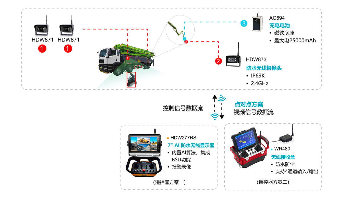 可選配敏視防水無線顯示器,或搭載無線接收盒連接遙控器與攝像頭,通過點(diǎn)對點(diǎn)方案傳輸視頻與控制信號(hào),實(shí)現(xiàn)作業(yè)實(shí)時(shí)監(jiān)控與高效操作。